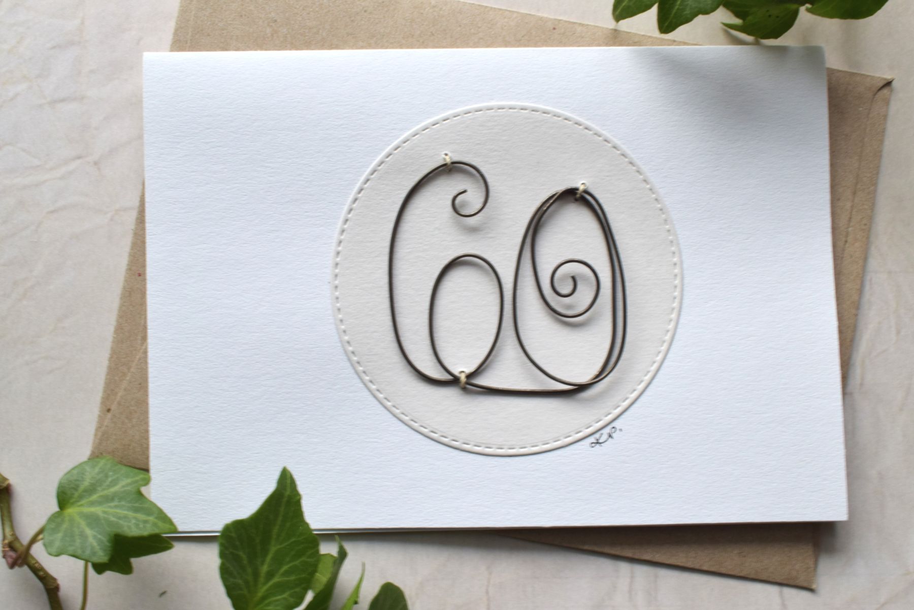 tavalliselle onnittelukortille. Tämä syntymäpäiväkortti sopii 60-vuotiaalle. Rautalankakortit ovat kotimaista käsityötä