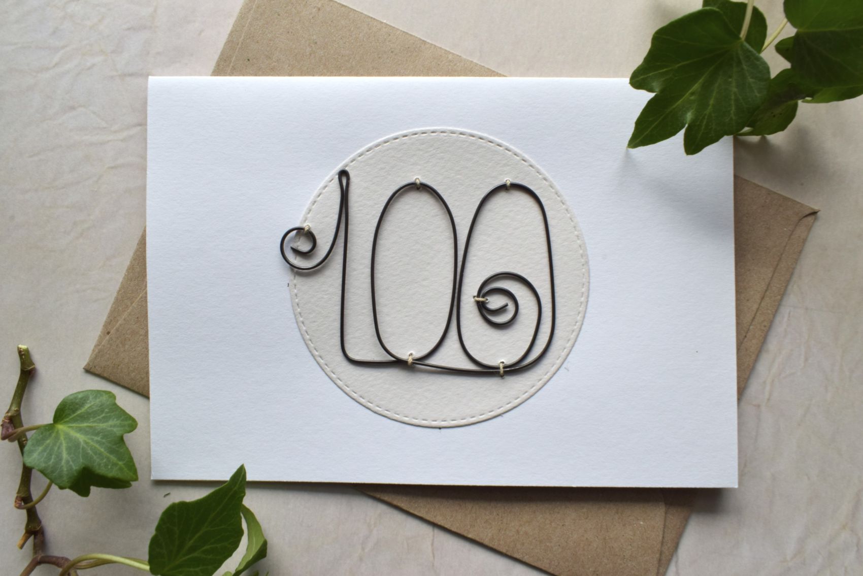 tavalliselle onnittelukortille. Tämä syntymäpäiväkortti sopii 100-vuotiaalle. Kortti sopii myös viisikymppisten tuplasynttäreille! Rautalankakortit ovat kotimaista käsityötä