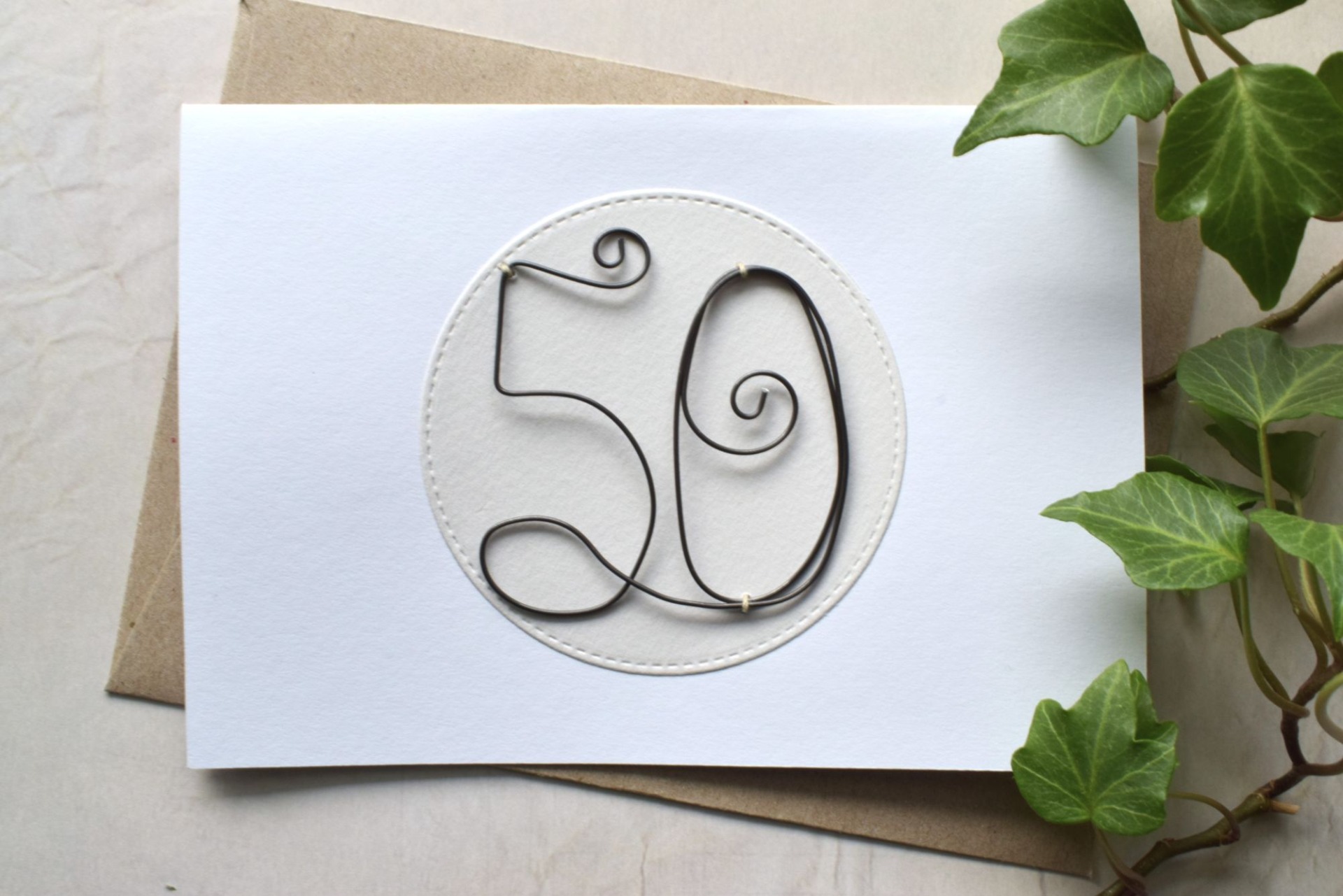 tavalliselle onnittelukortille. Tämä syntymäpäiväkortti sopii 50-vuotiaalle. Rautalankakortit ovat kotimaista käsityötä