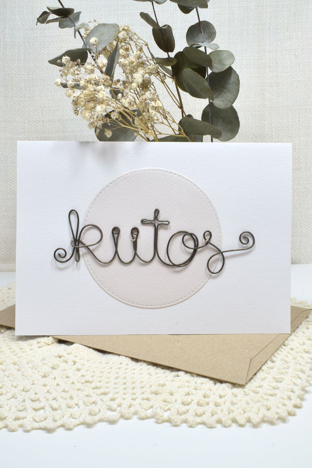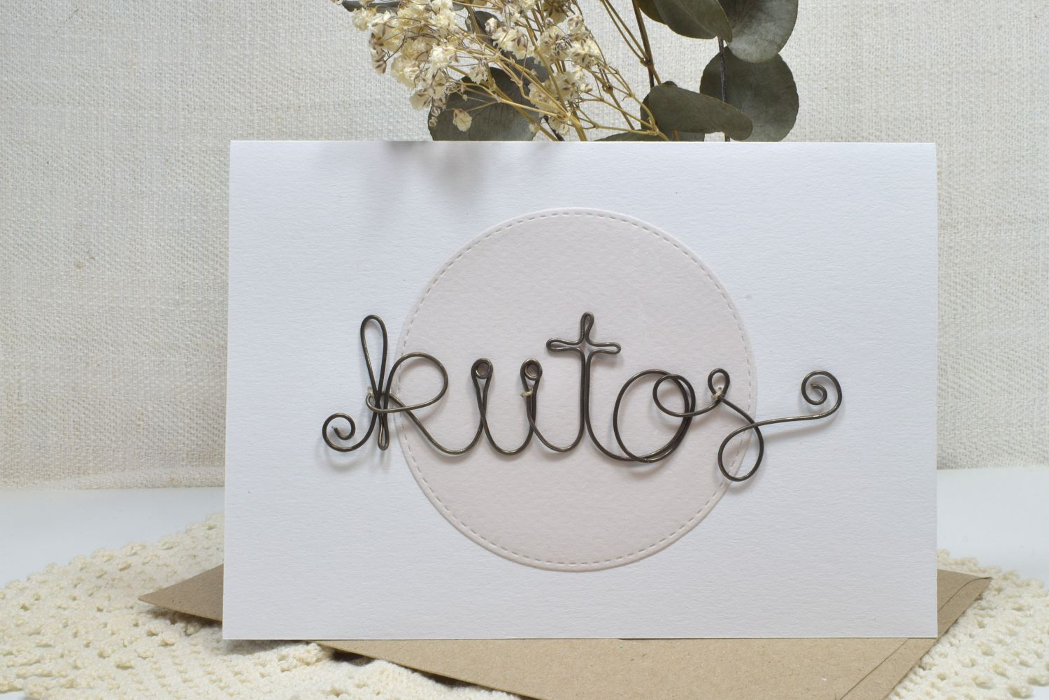 rustiikkinen rautalanka yhdistettynä vaaleaan korttipohjaan tekee