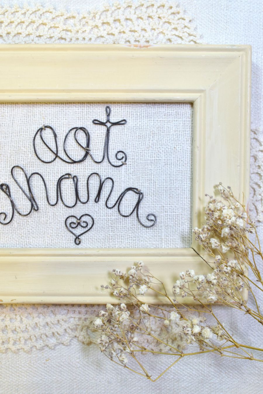 vain yksi kappale. Oot ihana-teksti on positiivinen ja kannustava. Rustiikkinen rautalankataulu tuo sisustukseen ripauksen